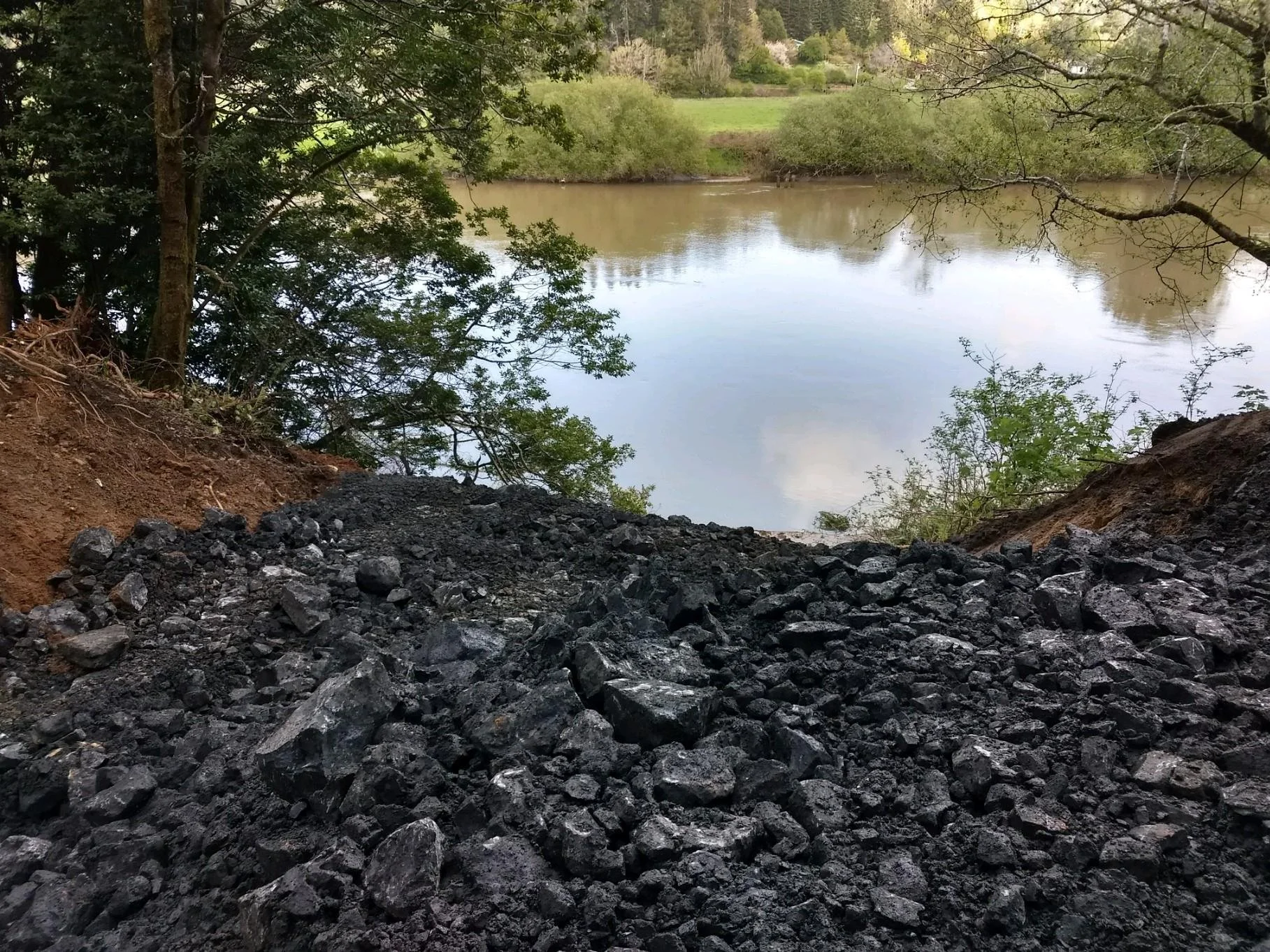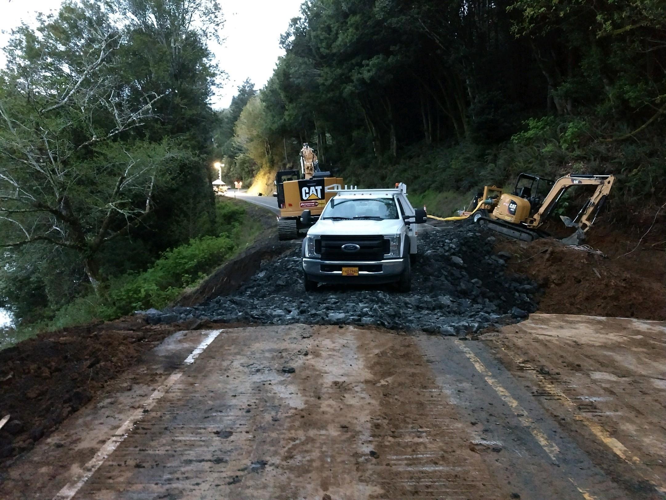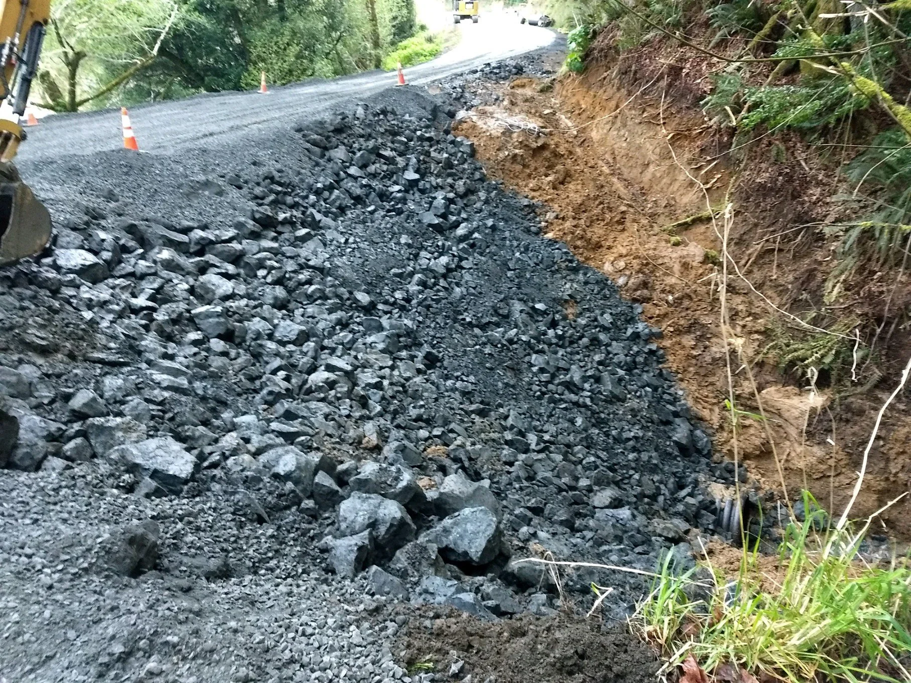 Heavy storm events washed out hwy 42s at m.p 5 near Bandon. We replaced failed CMP with oversized HDPE. Deployed stone embankment and simulated streambed material inside invert. Alongside construction of a fish passage ladder on outlet to connect to the Coquille River.